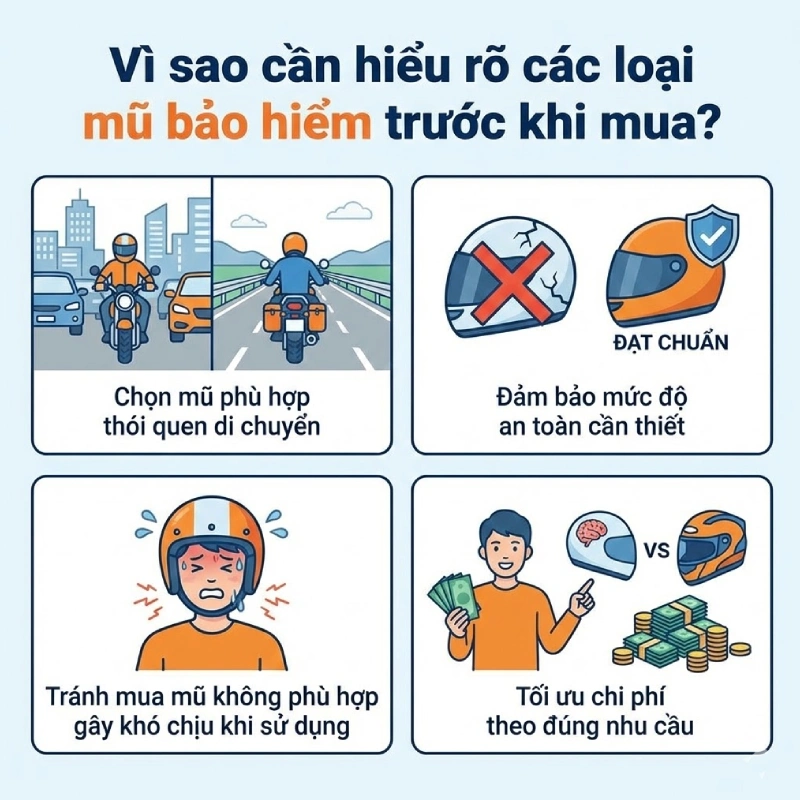 Vì sao cần hiểu rõ các loại mũ bảo hiểm trước khi mua?