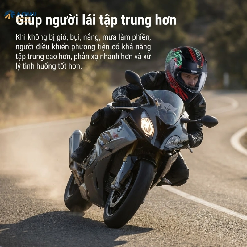 Khi không bị gió, bụi, nắng, mưa làm phiền, người điều khiển phương tiện có khả năng tập trung cao hơn, phản xạ nhanh hơn và xử lý tình huống tốt hơn.
