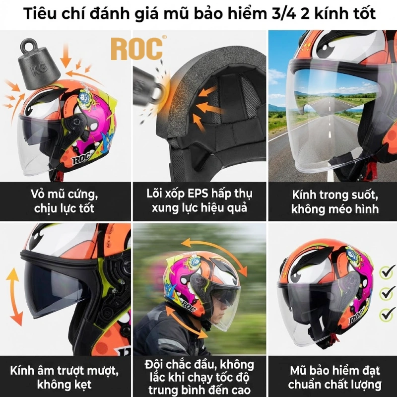 Tiêu chí đánh giá mũ bảo hiểm 3/4 2 kính tốt