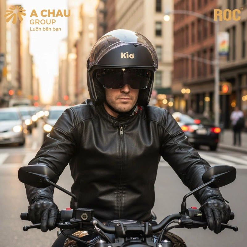 Trong phân khúc mũ bảo hiểm 3/4 có kính nam, ROC R68 nổi bật nhờ thiết kế hai kính tiện lợi. Ngoài kính chắn gió trong suốt, mũ còn tích hợp kính râm âm bên trong, giúp chống nắng và giảm chói hiệu quả khi di chuyển ngoài trời.